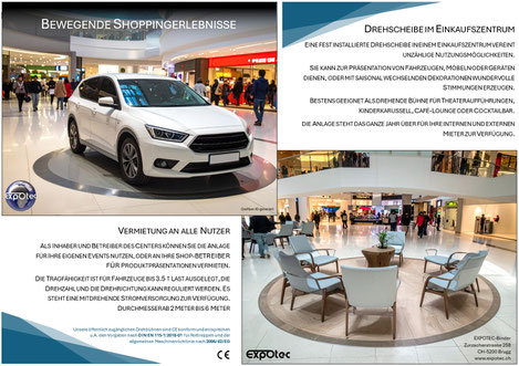 Profitieren Sie von unserer langjährigen Erfahrung in der Entwicklung, Konstruktion und Fertigung von Drehelementen und Elektromechanischen Anlagen für unzählige Anwendungen. Möchten Sie Fahrzeuge im Showroom, oder an Messen in den Mittelpunkt setzen? Oder Ihr Theater mit einer Wechsel-Drehplatte ausstatten? Die Zufahrt zum Parkplatz ist zu eng zum Rangieren? Sie wollen Objekte fotografieren und rotierend ins rechte Licht setzen?